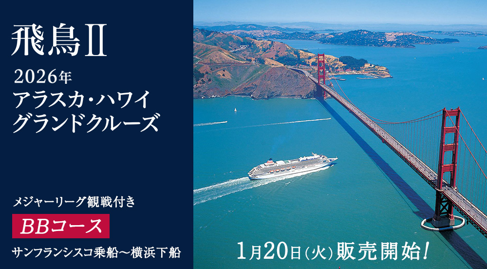「飛鳥Ⅱ」2026年アラスカ・ハワイグランドクルーズ 区間乗船パッケージツアーのご案内メジャーリーグ観戦付きのBBコース販売開始