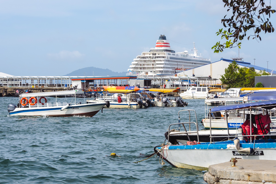 夜明けが近づくにつれて前方に姿を現したのは、東南アジア最高峰・標高4095mのキナバル山。日中は山頂が雲に隠れることも多いそうですから、晴天率の高い早朝に合わせた粋な航行スケジュールに感謝です。「お父さんったら、双眼鏡はまだスーツケースの中なの?」と、ご夫婦の微笑ましい会話に和まされながら、コタキナバルの朝の入港風景を静かに見守りました。