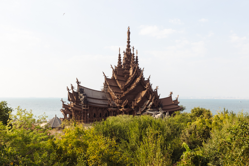 ツアーバスに揺られて向かったのは、1981年から建設が続く巨大な木造建築、サンクチュアリ・オブ・トゥルース。未完の理由は潮風や強い日差しによる木材の劣化が激しく、建設と同時に修復しているため。施主である実業家のレック・ウィリヤパンはすでにこの世を去っていますが、伝統技術の保護と継承という彼の目的からすれば、「未完」こそあるべき姿なのかもしれません。