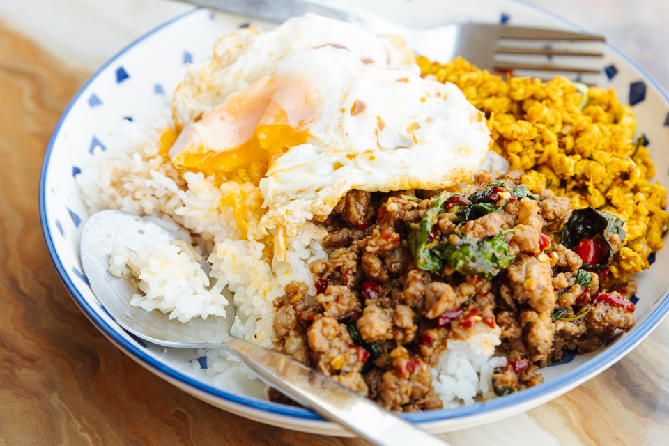一夜明けたパタヤの歓楽街を散策すると、街中を埋め尽くしていたネオンと喧騒はすっかり鳴りを潜め、何食わぬ顔で日常が繰り広げられていました。その変わり身の早さとたくましさに感心しつつ、通りがかった屋台村でガパオライスを指さし注文。たっぷり入った唐辛子に汗がどっと吹き出し、襲い来る辛さを水で流し込みながらパタヤの休日を締めくくりました。